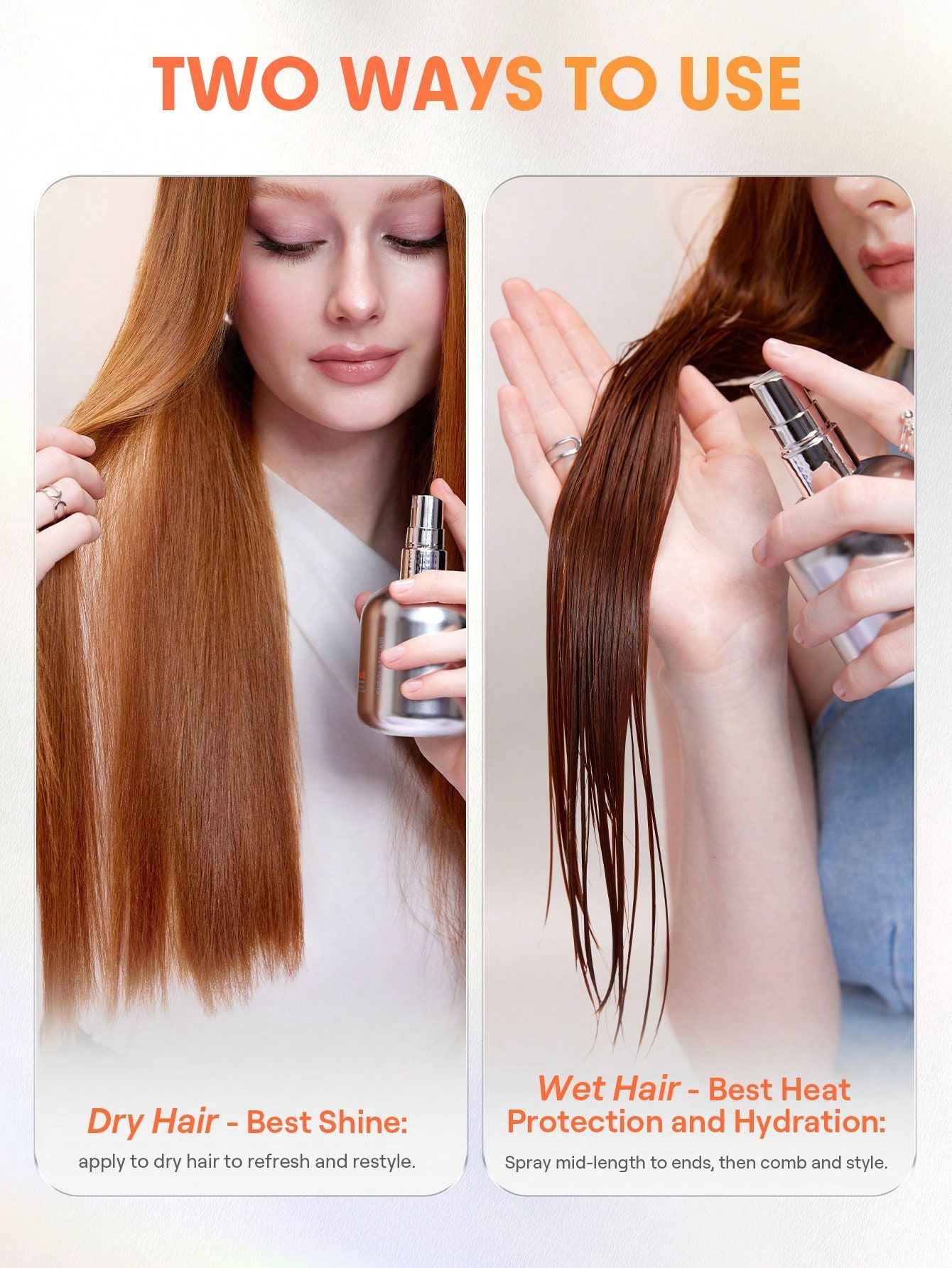 حضّري شعركِ واحميه مع هذا البخاخ المُركّز الذي يُترك على الشعر. يجمع هذا البخاخ متعدد الفوائد بين الحماية والتغذية بفضل تركيبته المتطورة المُدعّمة بالبروتين المُحلّل™، وهو بروتين كولاجين يُقوّي الشعر ويُرطّبه بعمق ويُغذّيه من الداخل، مع توفير حماية فعّالة ضدّ العوامل الخارجية المُسبّبة للإجهاد. مُعزّز أيضاً بـ GlossPro™، يُوفّر حماية من الأشعة فوق البنفسجية، ومُقاومة للحرارة حتى ٢٣٠ درجة مئوية (٤٥٠ درجة فهرنهايت)، ويُساعد على منع بهتان اللون. يُخفّف التجعد، ويُرطّب الشعر الطويل، ويُعزّز لمعانه بنسبة ١٢٥٪، ليترك شعركِ ناعماً ومُشرقاً لمدة تصل إلى ٧٢ ساعة.