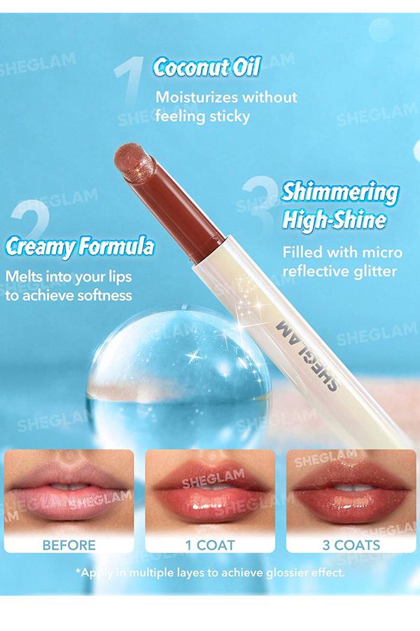 Loved the OG Pout-Perfect Shine Plumper? Meet the bolder and brighter big sister. This solid lip gloss stick is jam-packed with micro reflective glitter, delivering high-shine color saturation for the juiciest lips ever. Formulated with nourishing coconut oil, this gloss keeps lip moisturized without the stickiness. Features: - Coconut oil mosturizes withiut feeling sticky - Creamy formula melts into your lips to achieve softness - Shimmering high-shine filled with micro reflective glitter - Size: 2g How to Use: - Click to dispense 1mm - Swirl on palm to activate first use - Dab on lip center and layer as needed - Blend edges until you reach your desired effect