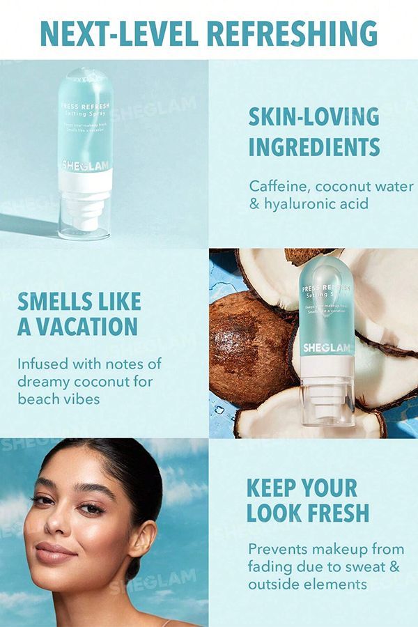 بخاخ مكياج يُثبّت إطلالتكِ، ويُرطّب البشرة ويُنعشها برذاذ ناعم وخفيف. يُساعد على منع بهتان المكياج بسبب العرق والعوامل الأخرى، مع توفير لمسة نهائية طبيعية ندية غير لزجة أو جامدة. تركيبته مُركّبة من مكونات مثل حمض الهيالورونيك، والبانثينول، والكافيين، والصبار، وهو نباتي، وخالي من البارابين، والكحول، والتلك. المميزات الرئيسية يدوم طويلاً: يُثبّت المكياج في مكانه لفترة طويلة، ويمنع بهتانه بسبب العرق والعوامل الجوية. مرطب: يُنعش البشرة ويُرطّبها، مما يُساعد على منع الجفاف والتكتّل. خفيف الوزن: يُعطي رذاذًا ناعمًا ومنعشًا، غير لزج ولا يُعطي ملمسًا خشنًا. اللمسة النهائية: يُضفي لمسة نهائية طبيعية وندية، مع أن بعض الأنواع تُوصف بأنها ذات تأثير غير لامع. المكونات: يحتوي على مكونات لطيفة على البشرة مثل حمض الهيالورونيك، والبانثينول، والكافيين، والصبار. العطر: برائحة جوز الهند الخفيفة. القيم الأخلاقية: نباتي، لم يُجرّب على الحيوانات، وخالٍ من الكحول، والبارابين، والتلك. حجم صغير: متوفر بحجم صغير لسهولة الحمل وللمسات التجميل أثناء التنقل.