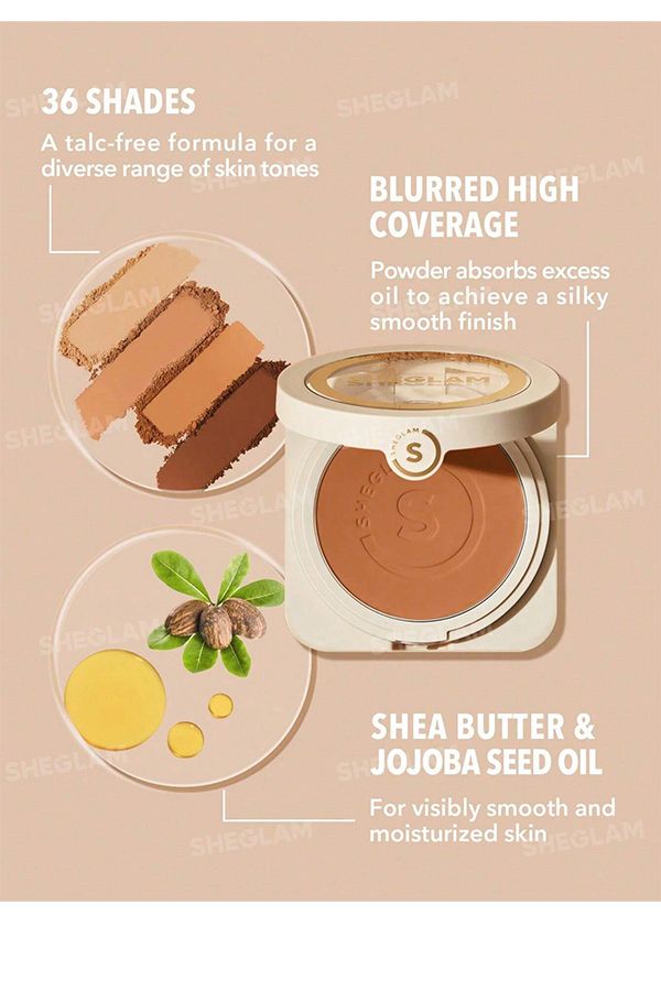 Say BUH-BYE to unwanted shine and HELLO to a soft, smooth, and lightweight full-coverage finish! Our oil-control soft-focus powder foundation features a talc-free formulation, enriched with natural shea butter and jojoba seed oil, that removes shine while making your skin appear silky smooth!
