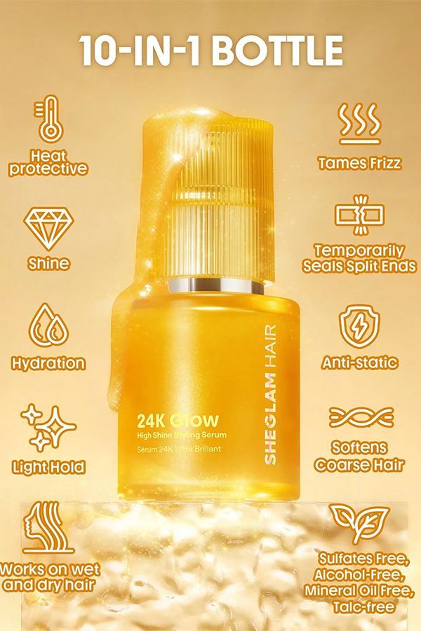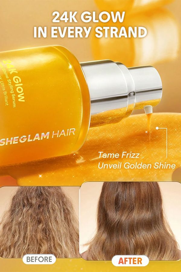 Elevate your hair game with this luxurious styling serum infused with 24K gold particles, designed to give your hair a radiant glow and elegant finish every time. This serum helps smooth frizz, control flyaways, and enhance shine—all without weighing the hair down or leaving any greasy residue. With its lightweight, fast-absorbing formula, it penetrates deep into each strand to nourish from within, leaving your hair healthy, sleek, and luminous all day long. Perfect for a glamorous, polished look every day.