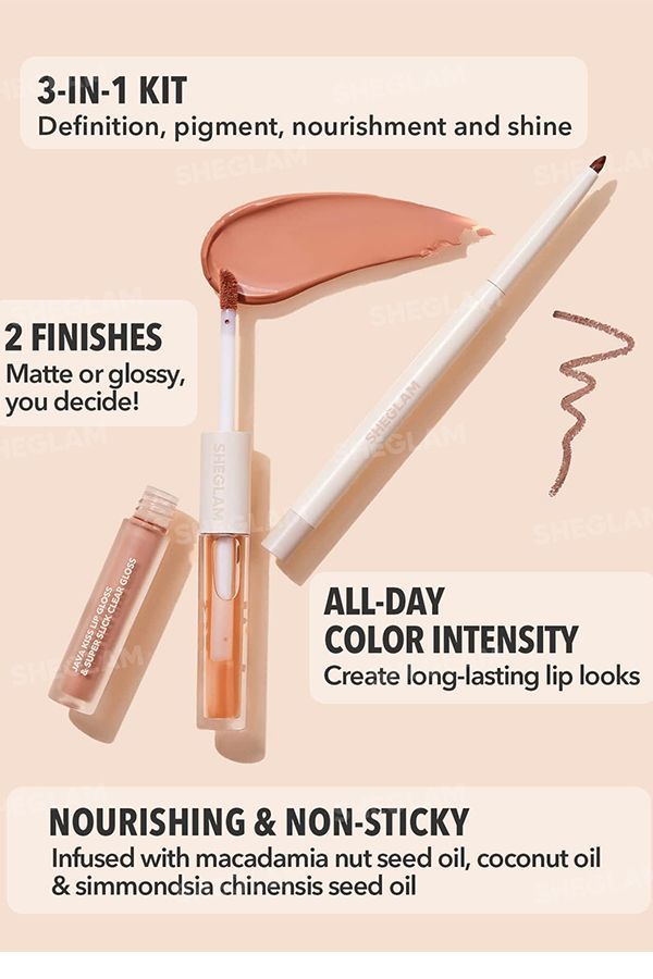 JAVA KISS LIP GLOSS: Matte finish that moisturizes and smooths with a beautiful texture.Long-lasting color that won’t fade.Moisturizes with Macadamia Seed Oil,Coconut Oil,Jojoba Seed Oil,and Shea Butter fade.Vegan and Alcohol Free. SUPER SLICK CLEAR GLOSS: Light gel texture that absorbs quickly and leaves lips moisturized and never sticky,and keeps your lip color base in place.Beautiful high-shine finish with a crystal clear luster and long-lasting hydration thanks to skin-loving ingredients,like Macadamia Seed Oil,Coconut Oil,and Jojoba Seed Oil.Yummy Vanilla fragrance,Vegan and Alcohol-Free. SO 90'S LIP LINER: Smooth and velvety matte finish that doesn't budge.Nourishes lips with plant extracts,like Macadamia Seed Oil,Coconut Oil,Jojoba Seed Oil and Shea Butter.Vegan and Alcohol-Free."